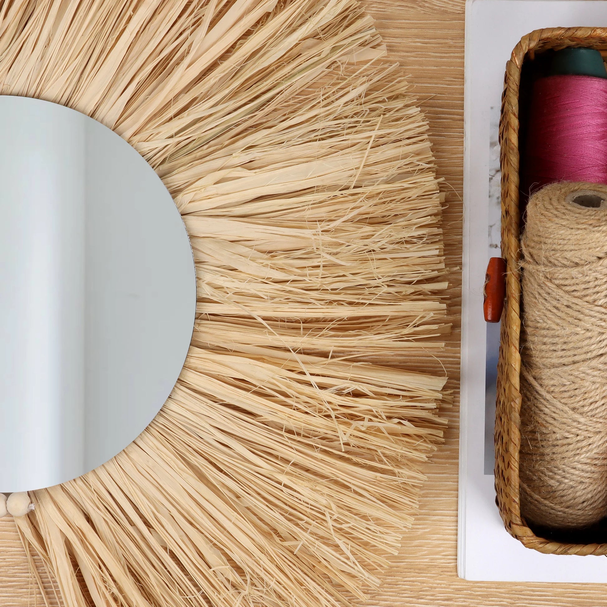 Ce miroir allie modernité et authenticité grâce à son verre acrylique léger et sécurisé, entouré de tiges de paille naturelles.