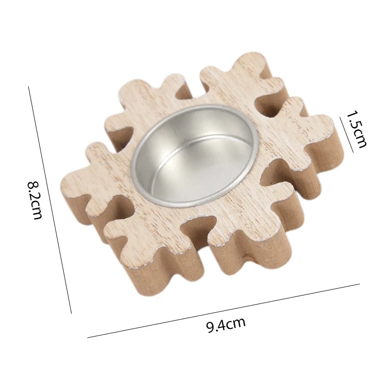 Apportez une touche chaleureuse et hivernale à votre décoration avec ce bougeoir en bois en forme de flocon de neige, étoile et sapin.
