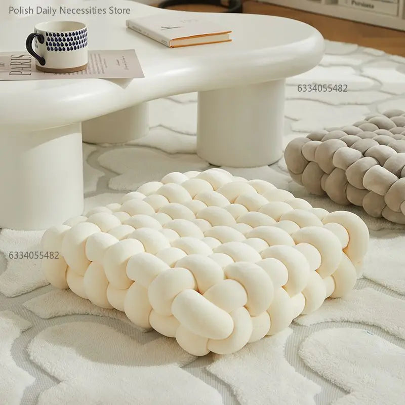 Apportez une touche d’originalité et de confort à votre intérieur avec ce coussin carré au tressage raffiné.