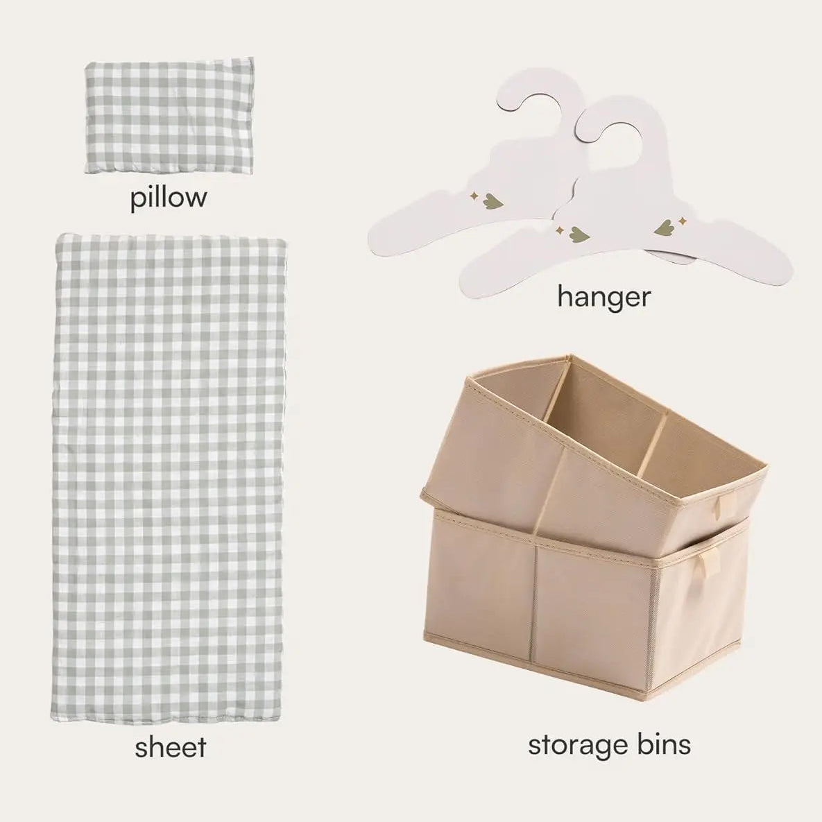 Un ensemble complet pour coucher, habiller et ranger les affaires de poupée comme dans une vraie chambre !